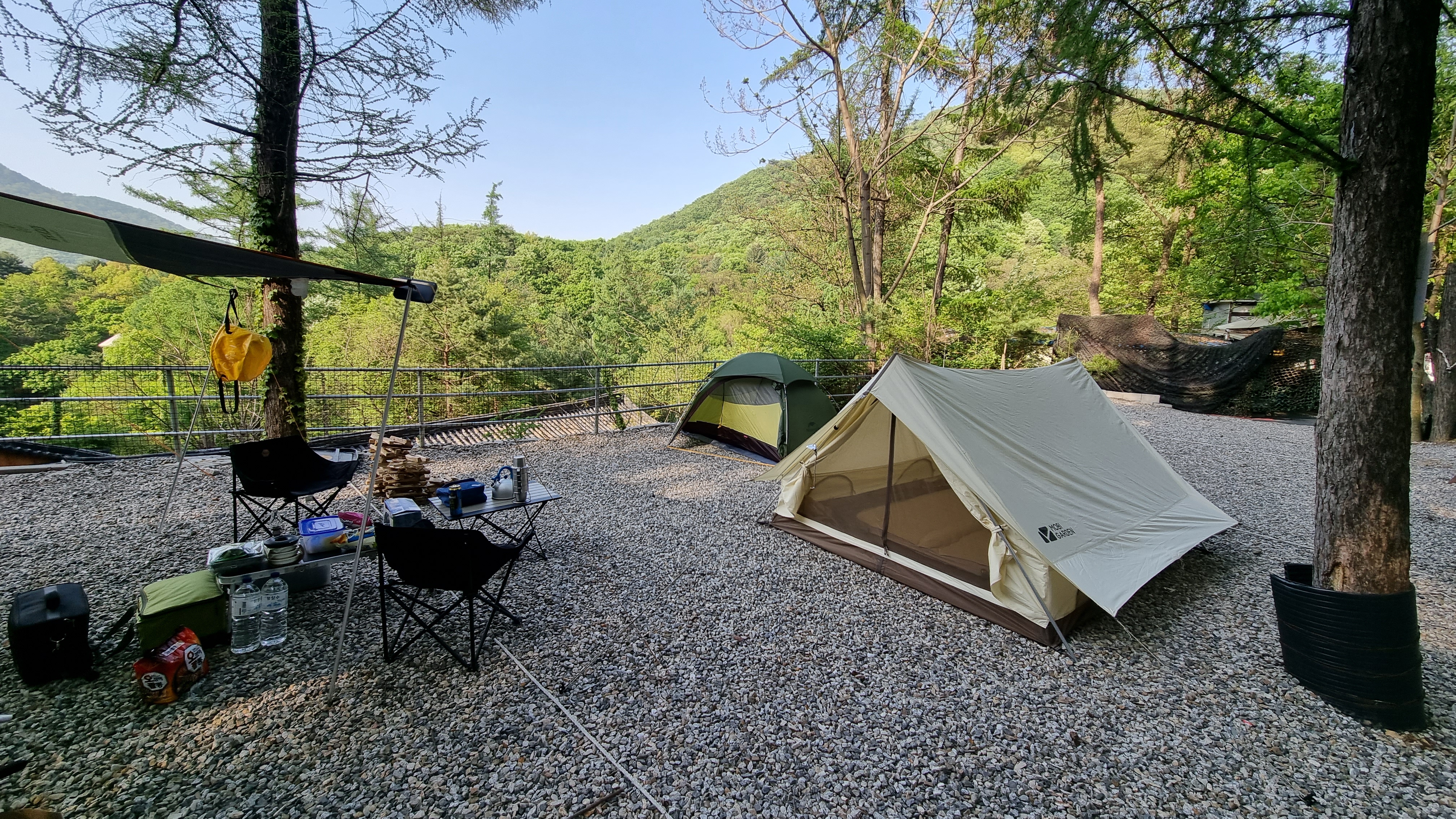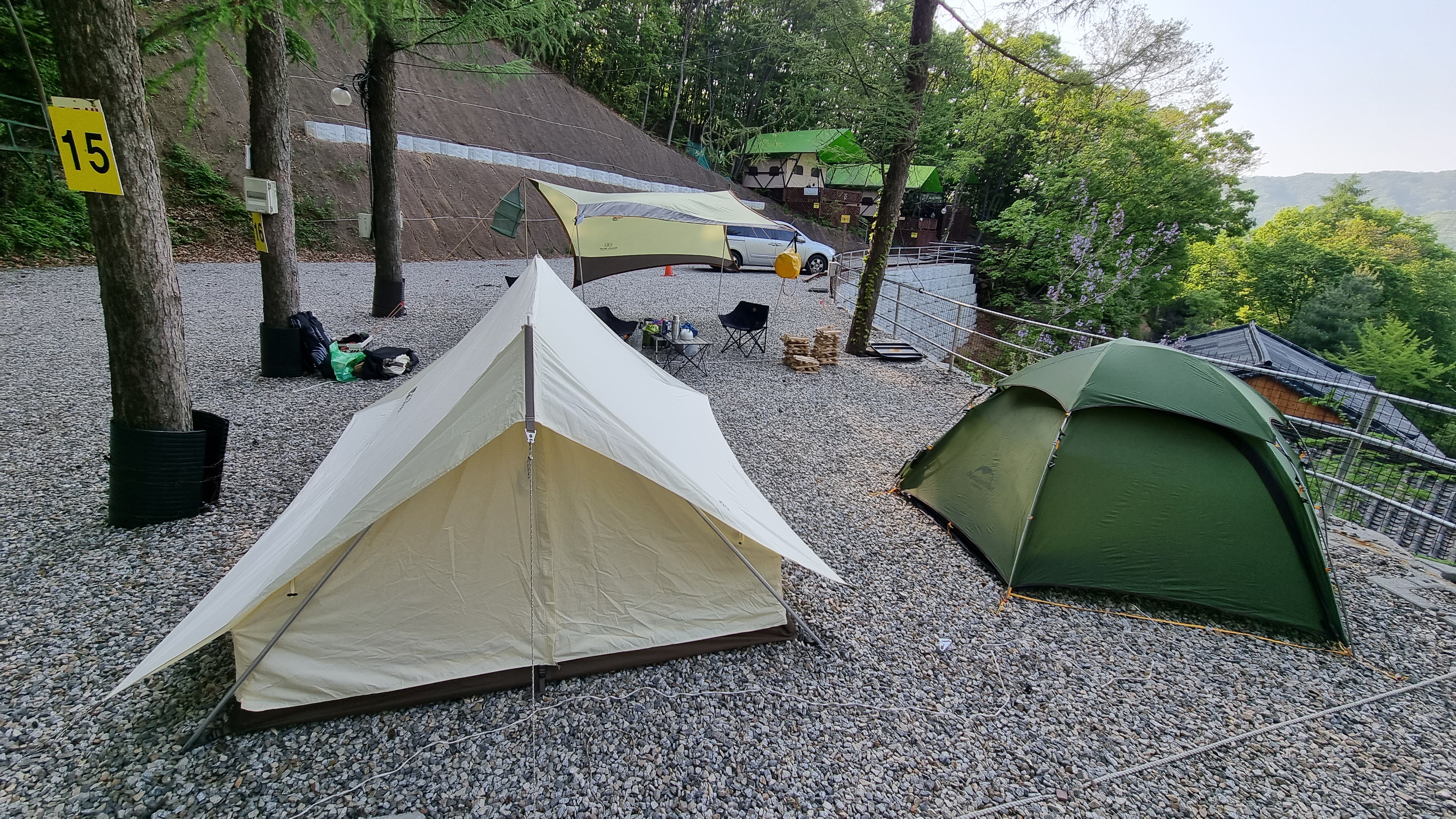 요즘 캠핑장들이 대부분 사이트가 다닥다닥 붙어 있는 편이라 크게 사이트가 작아보이진 않았지만, 두 가족일 경우엔 차라리 두개 사이트가 붙어서 독립적으로 사용하는 사이트를 선택하시는게 좋을 듯 합니다.