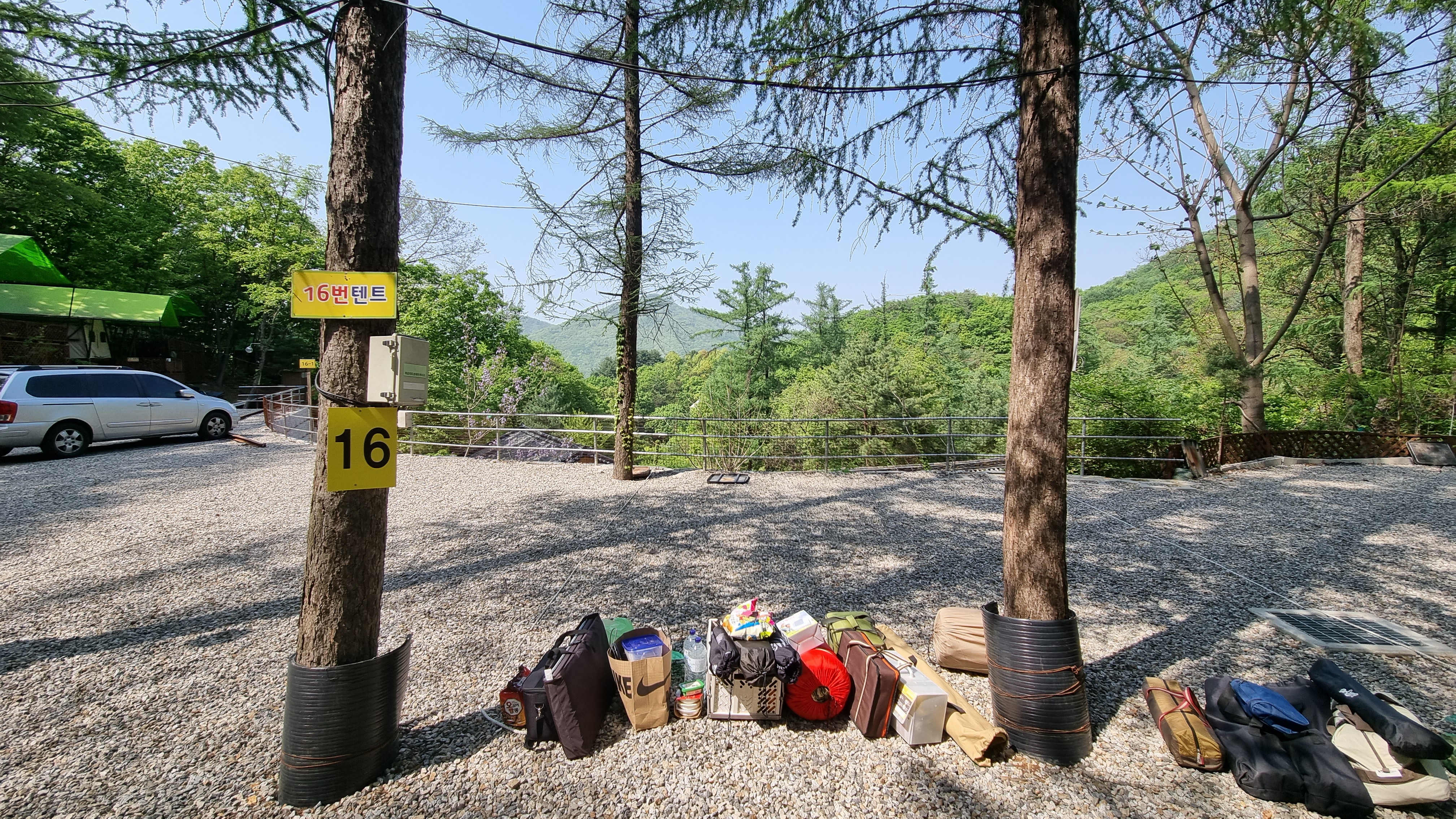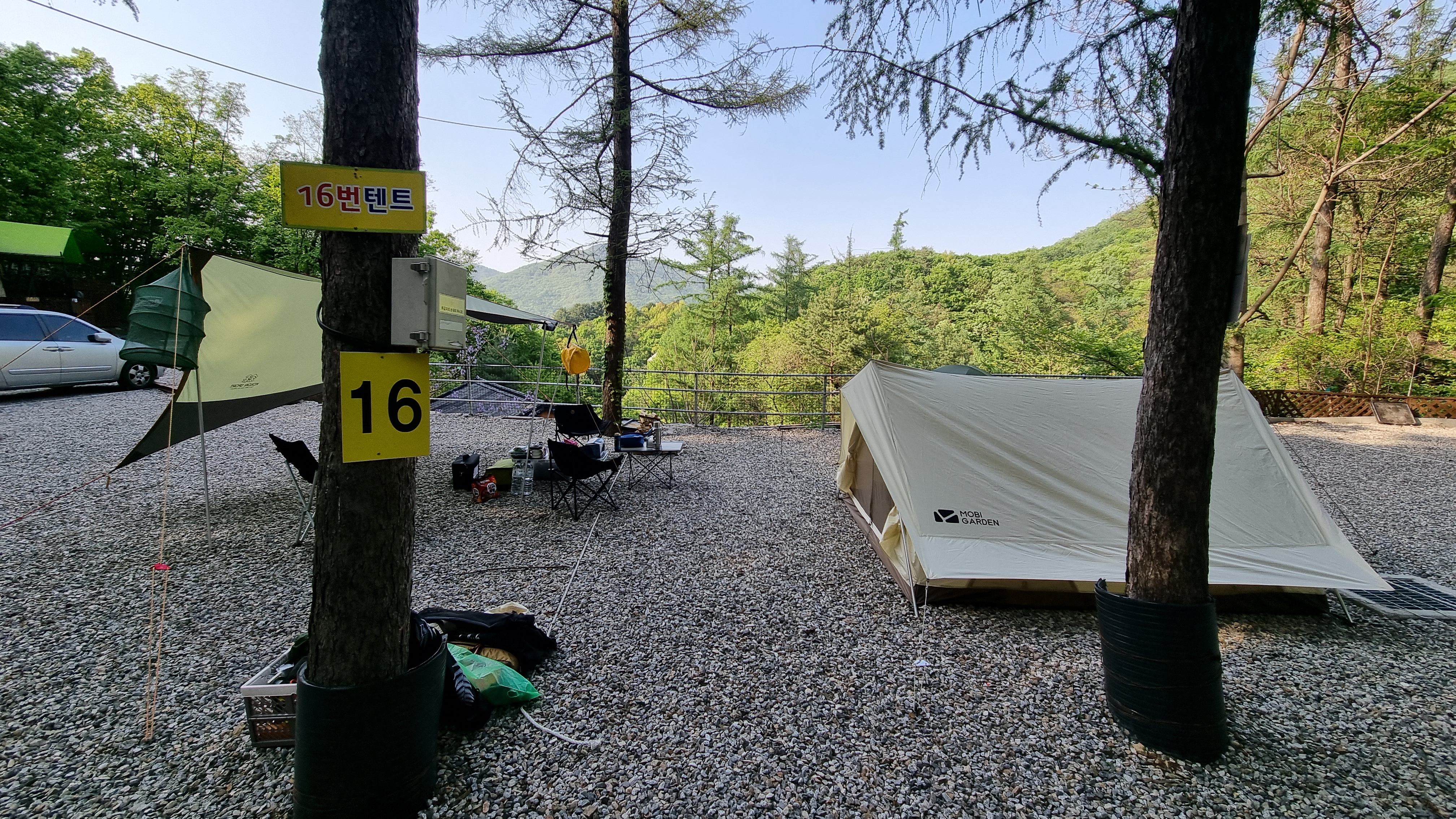16번사이트 옆 16-1번 사이트가 있고, 그 옆에 주차를 할 수 있습니다.