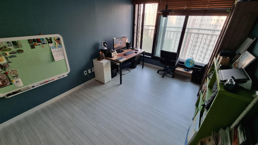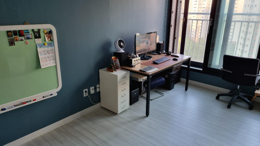 서랍장이 있는 책상과 사무용같은 책상이 있었는데, 그렇게 처음 꾸몄을때는 맘에 들었지만 지금은 방이 너무 좁아진거 같아서 오래된 서랍장과 책상을 없애버리고 사무용 책상 하나만 남겨두기로 했습니다.