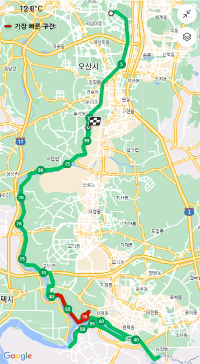 동탄 -> 오산천 -> 진위천 -> 안성천 -> 팽성대교 -> 당거리쉼터 -> 평택국제대교 그리고 가능하면 "봉평장터" 막국수를 먹고 돌아오는 코스입니다. 총 거리는 약 120km정도 될거 같습니다.
